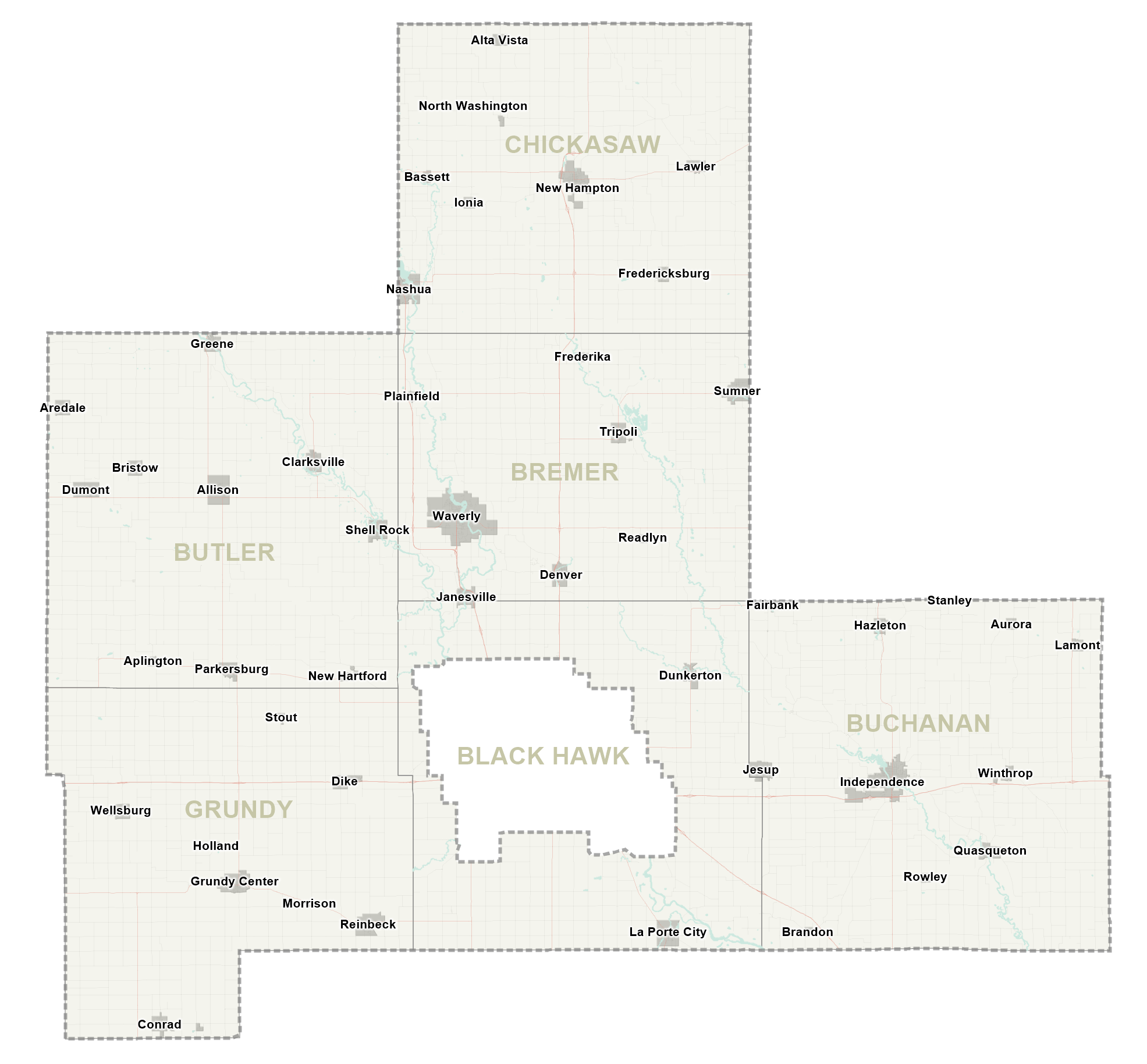 | 6 COUNTIES: Black Hawk Bremer Buchanan Butler Chickasaw Grundy |
