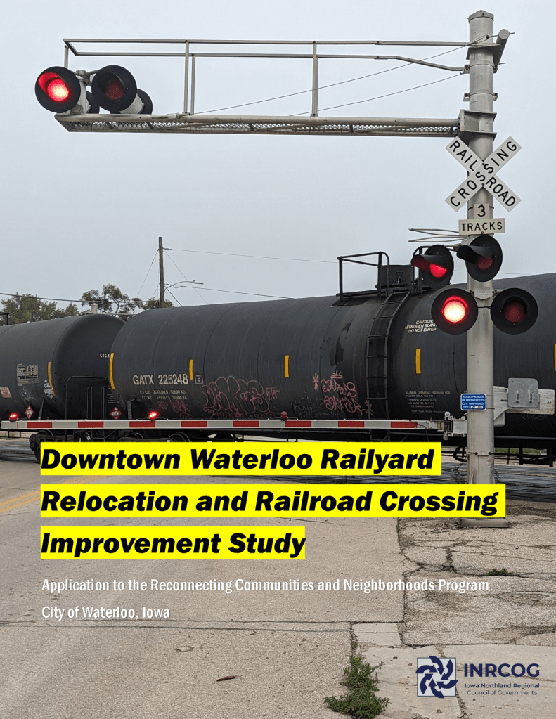 In March of 2024, the U.S. DOT announced an award for the nationally competitive Reconnecting Communities and Neighborhoods Program (RCN) for the City of Waterloo. The $750,000 award will be used to analyze the location and impacts of the CN Railyard between E 4th St and Martin Luther King Jr. Dr. The study will specifically look at safety, equity, community connection, potential relocation, and economic development.